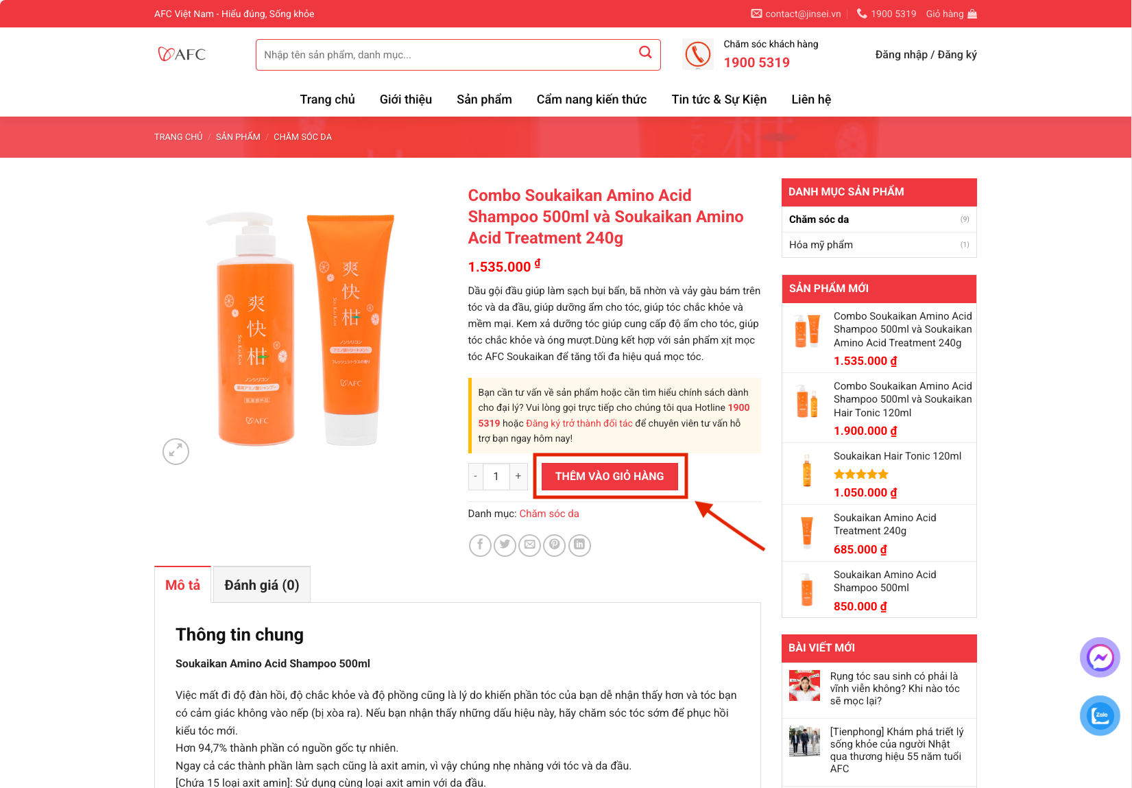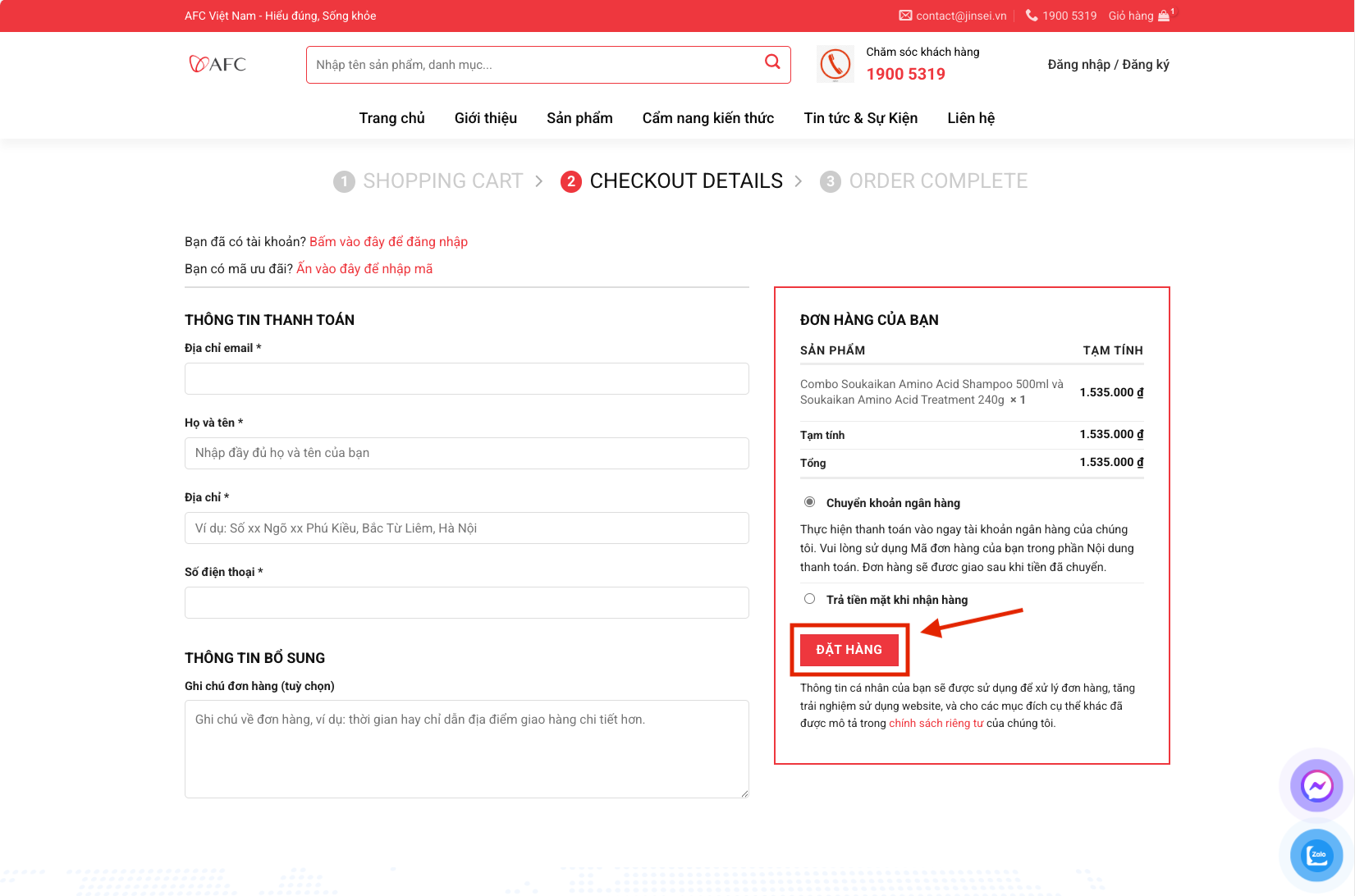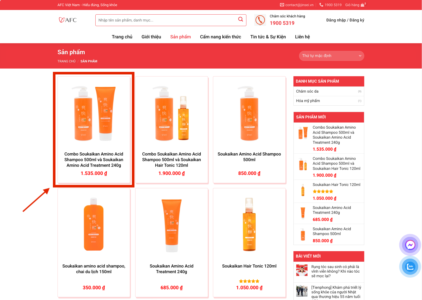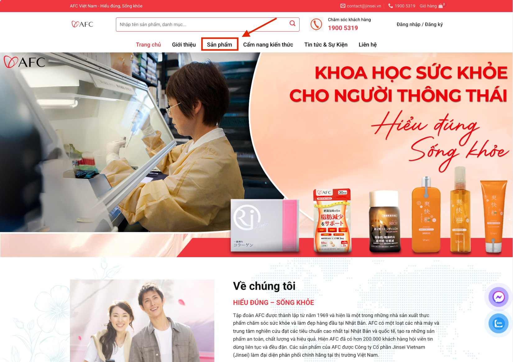 Bước 1: Truy cập website afcshop.vn và mục “sản phẩm” để xem các mặt hàng.
