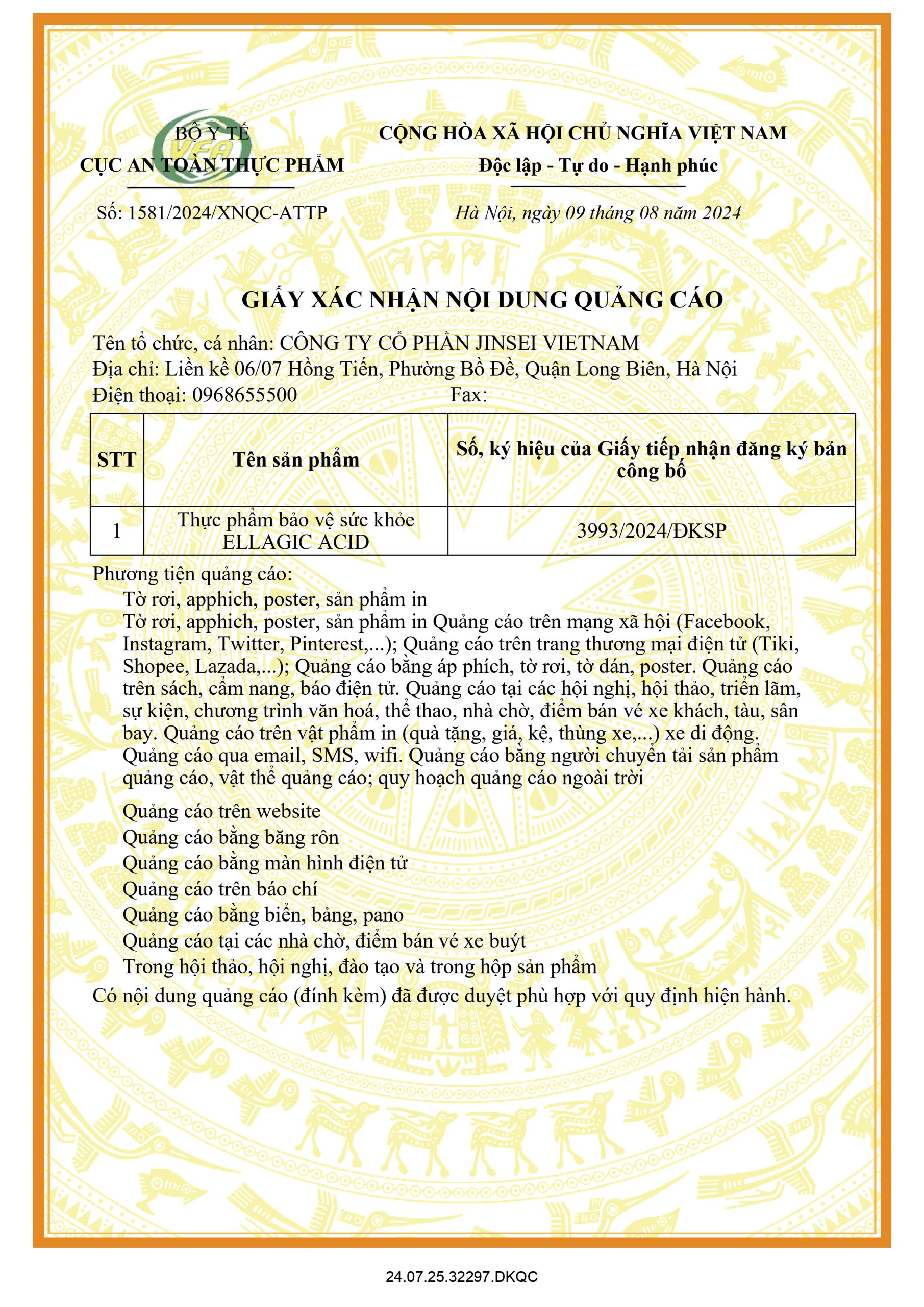 – Tổ chức chịu trách nhiệm về hàng hóa: Công Ty Cổ Phần Jinsei Vietnam